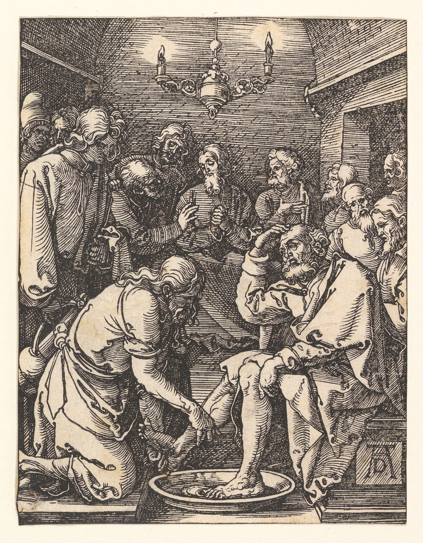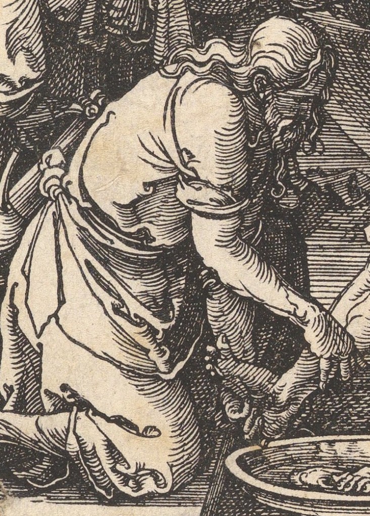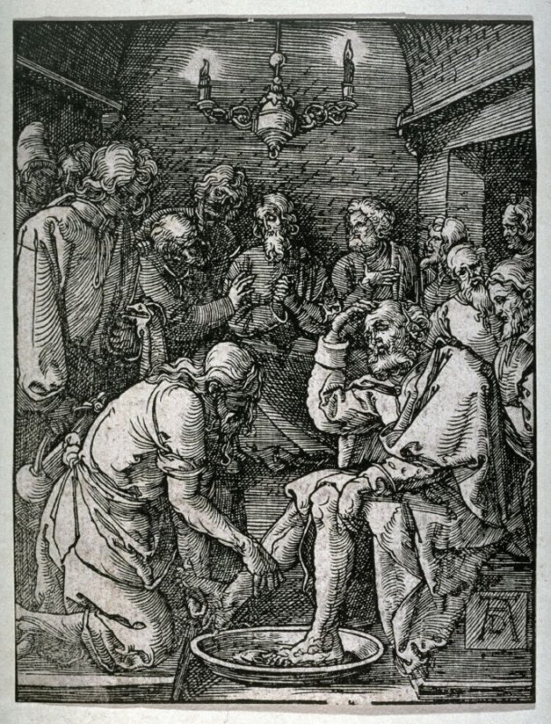 A.1 : Albrecht Durer, Christ Washing the Feet of the Disciples, from The Small Passion. c. 1508. Woodcut. Sheet: 5 1/16 x 3 7/8 in. (12.8 x 9.8 cm). Metropolitan Museum of Art, The George Khuner Collection, Gift of Mrs. George Khuner,1975, 1975.653.31. https://www.metmuseum.org/art/collection/search/388045