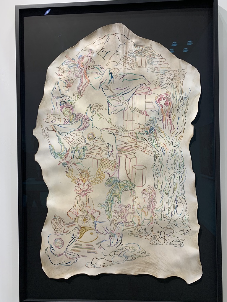 Howie Tsui (Patel Brown) – How often do you see an entire goat parchment at a contemporary art fair? How about a goat parchment covered with creepy drawings? Tsui’s drawings make me feel some kind of way, and I’m not sure I want to give words to those feelings.