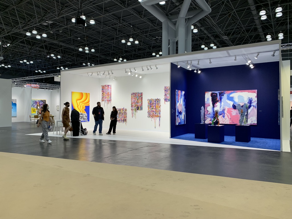 Ever since Covid, the big art fairs that descend on New York twice yearly, in the spring and the fall, have become increasingly blasé about their status as the trade shows of the art market. The booths are less interesting and less experimental than those pre-Covid. Galleries bring what sells, and what sells, these days, are flat works—paintings, mostly, some drawings or other works on paper, sometimes textiles. Given the cost of transporting artworks these days, and the unpredictability of supply-chain logistics, galleries seem resigned to shipping work that can be easily packed.[1] Lots of galleries show small sculptures (most smaller than, say, an armoire or dresser), or ceramics, which easily fit on tables or plinths. Gone are the days when galleries dedicated entire booths to installations. At the Javits Center, the Armory Show’s home since 2021,[2] we encounter acre upon acre of well-lit white booths. Most galleries aren’t even bothering with custom wall colors anymore. Just pop the work on a white wall and wait for it to sell.