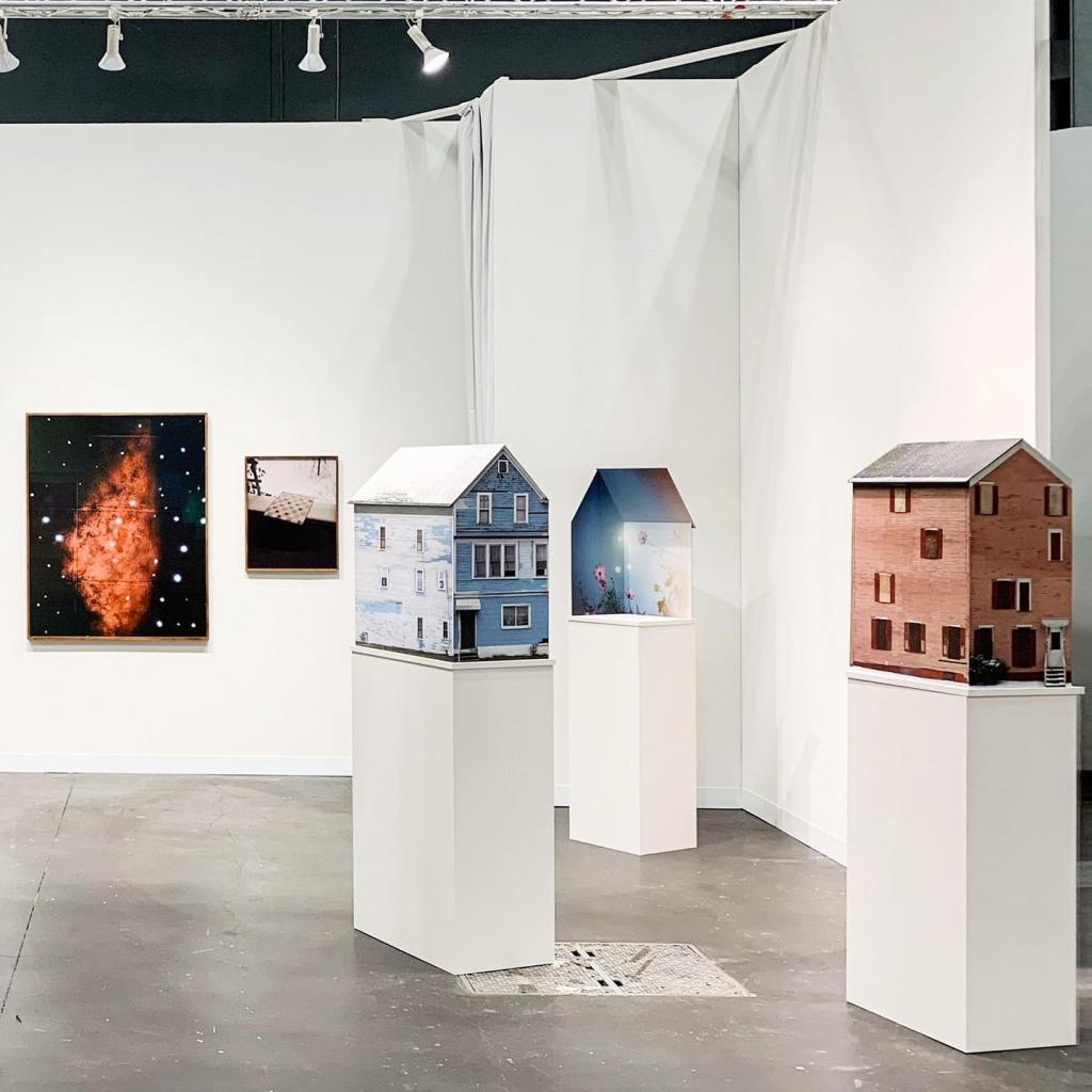 Gregory Halpern (Loock Galerie) – These are houses that are photographs, or maybe photographs that are houses. They look like houses on one side, and I thought that they would, like dollhouses, display the innards of the house on the other side, but instead the interiors of these little houses are papered with photographs of the night sky and other things. They are sweet, sentimental, and a bit tawdry, like a Mary Gaitskill story.