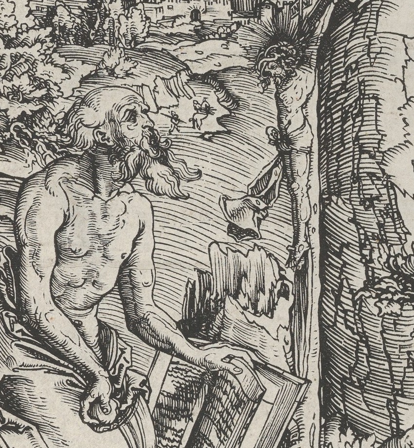 Right: Lucas Cranach, woodblock print of St. Jerome.